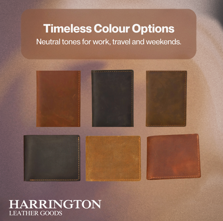 At Harrington, many of our pieces are made from genuine, full-grain leather — the kind that matures beautifully over time and reflects the craftsmanship behind every stitch.