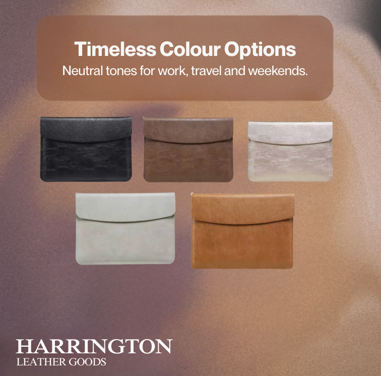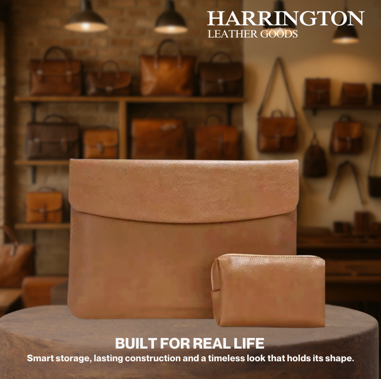 At Harrington, many of our pieces are made from genuine, full-grain leather — the kind that matures beautifully over time and reflects the craftsmanship behind every stitch.
