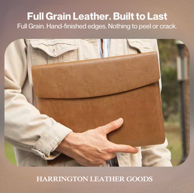 Made from high-quality genuine leather, this protective sleeve combines softness and strength to safeguard your device from scratches, dust, and light impact. The smooth texture and elegant stitching create a luxurious finish suitable for any professional environment.