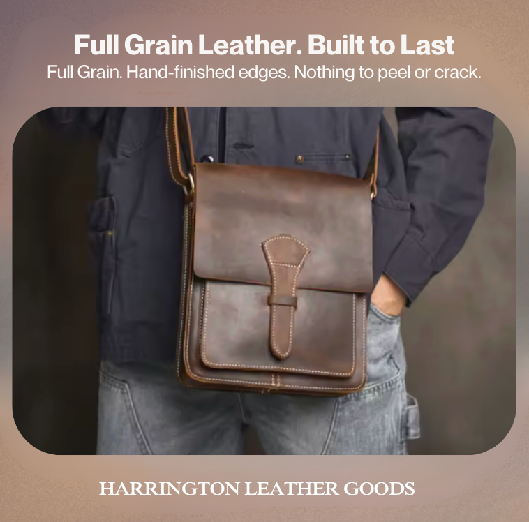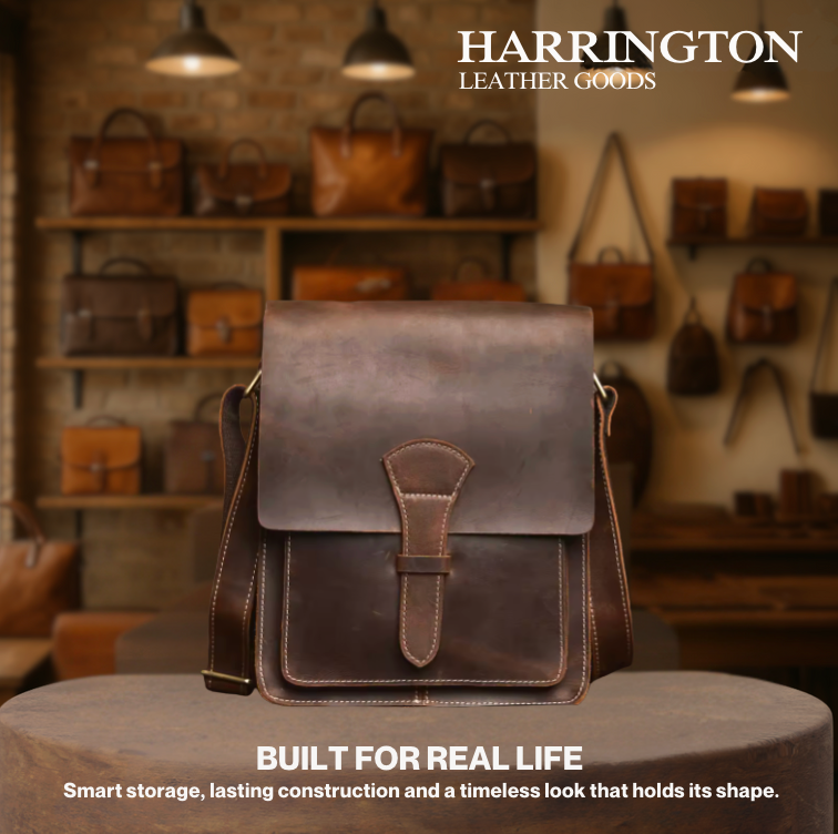At Harrington, many of our pieces are made from genuine, full-grain leather — the kind that matures beautifully over time and reflects the craftsmanship behind every stitch.